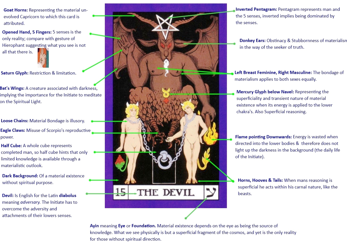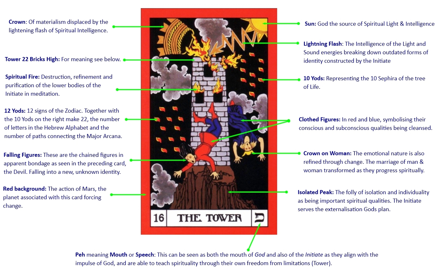 A few books on Tarot look deeper into the esoteric meaning behind the cards and relate them to the spiritual path but even these are limited by how far the author has spiritually evolved. Jung for instance relates the major arcana to psychological archetypes whilst others such as Paul Foster Case seem to go much deeper and have tried to produce a detailed account of Tarot occult symbolism, much of which is included here with the annotated images.