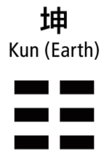 In the I-Ching, the Earth Trigram is represented by three yin lines, again emphasising the receptivity of the card:
