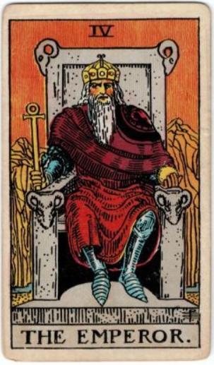 The Emperor represents the Fools earthly father. His armour under his cloak symbolises inner strength, jewels = material wealth & status. The Emperors task is to teach the Fool the material side of life & to provide guidelines on moral & ethical behaviour.