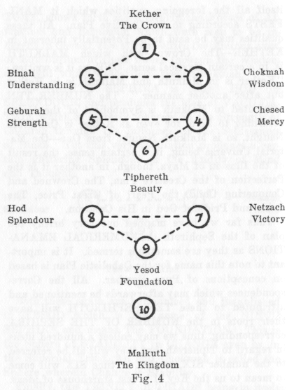 The triads are of significance because triangles are the first shapes, their stability is of importance. These are respectively causative, deliberative and formative. To pursue an action one requires a cause a direction for that cause and a receptacle for it. The totality of this is Malkuth, the Kingdom. The ten sephiroth then fall into three categories of three plus Kingdom. They represent all aspects of creation so that all keywords possess attributes which will fit any situation.