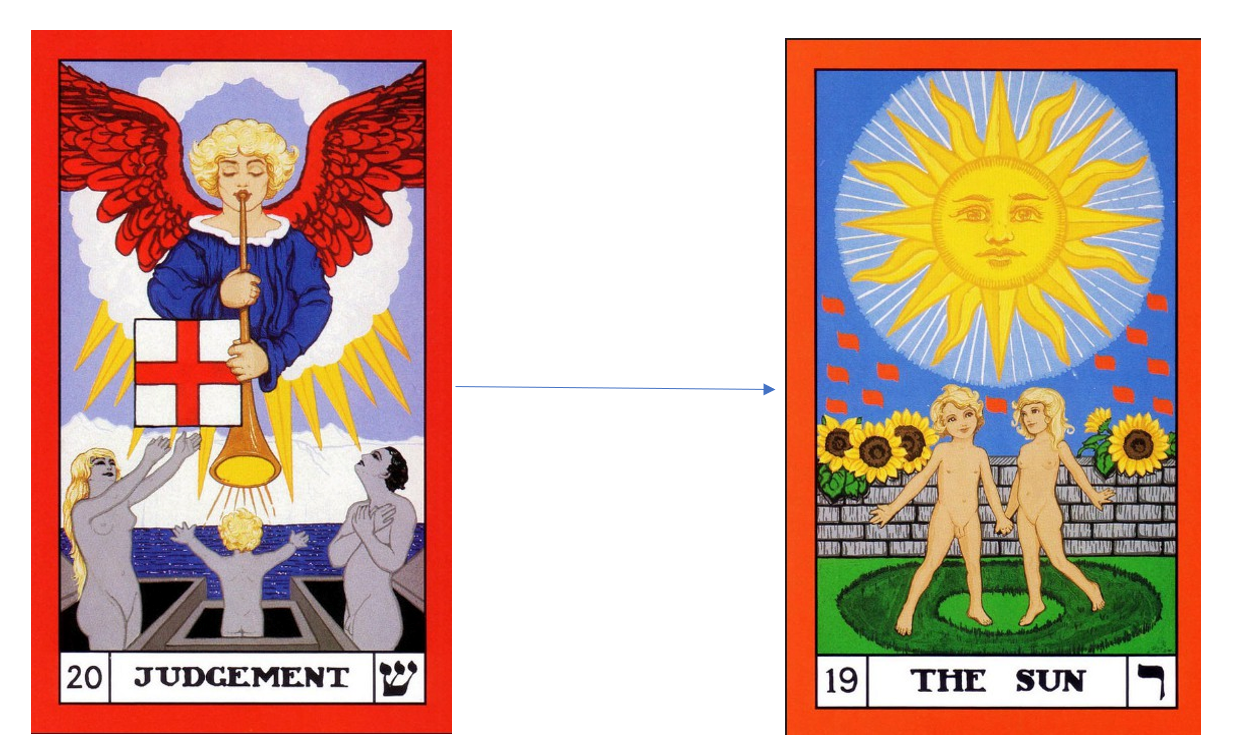After receiving Initiation in the Jugdement Card, the new Initiate will now move on to the energies of The Sun Tarot Card. It has to be remembered that the Tarot in in highest expression is symbolic of real experiences, both in the World and the Spiritual Realms, and the more we can apply it to our chosen path, the more useful a tool it becomes.